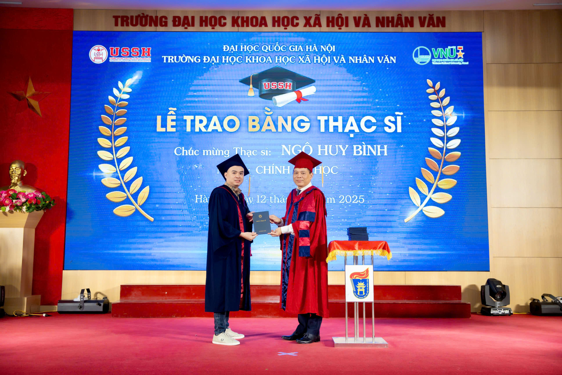Một khoảnh khắc xúc động tại Lễ trao bằng Thạc sĩ, Tiến sĩ của Trường Đại học Khoa học Xã hội và Nhân văn