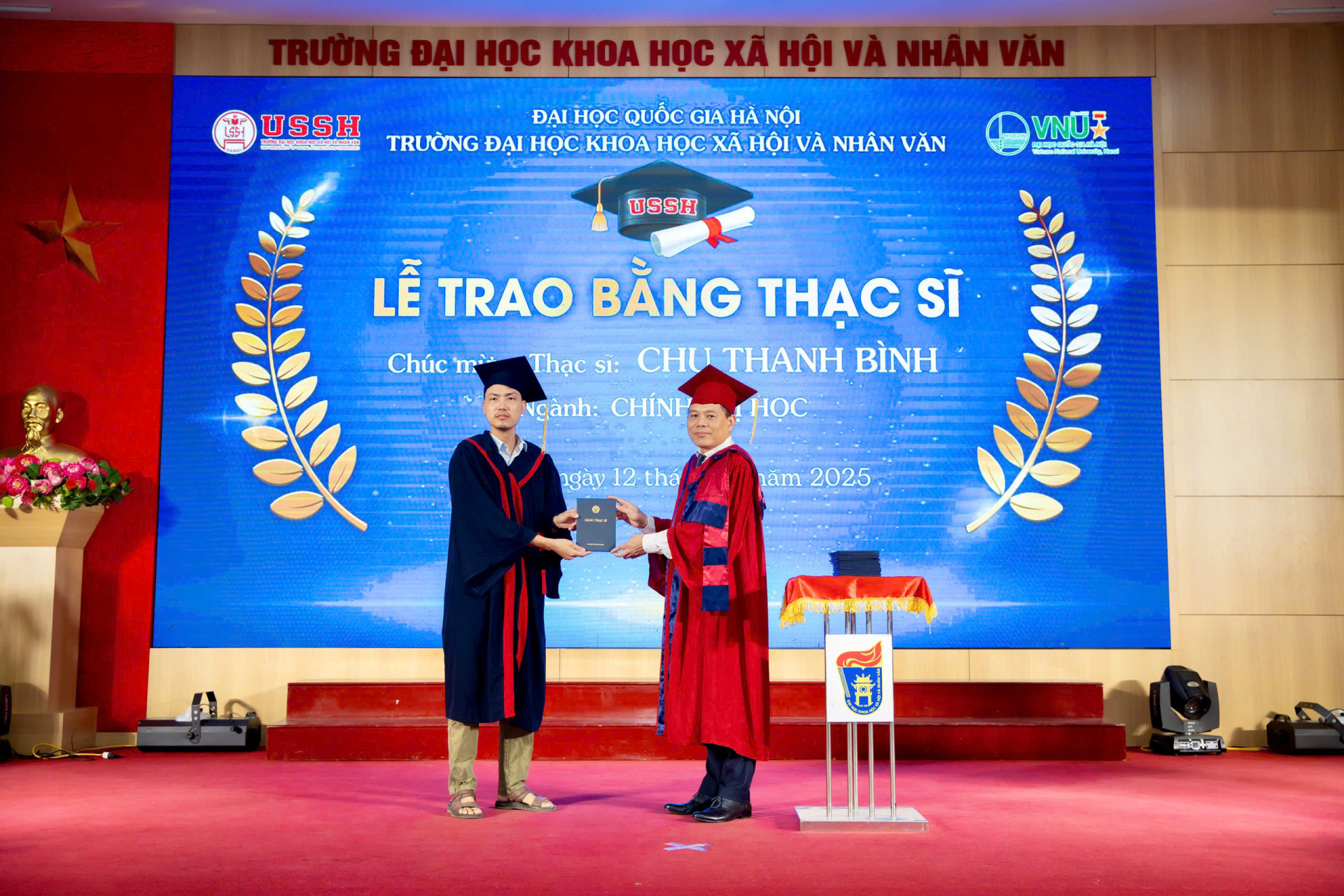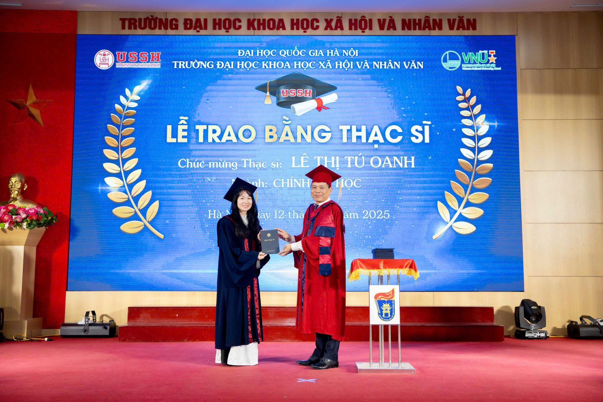 Tân Tiến sĩ Dương Ngọc Lang - một trong bốn tiến sĩ được khen tặng danh hiệu Tiến sĩ có thành tích xuất sắc trong học tập và nghiên cứu, đã bày tỏ sự tri ân sâu sắc đến ban lãnh đạo, các thầy cô hướng dẫn và các cán bộ tại các phòng chức năng của nhà trường đã luôn đồng hành, tận tâm hỗ trợ các học viên, nghiên cứu sinh trong suốt hành trình học tập, nghiên cứu. “Môi trường học thuật nghiêm túc, sự chỉ bảo tận tình của các thầy cô đã giúp chúng em gặt hái được thành quả tốt đẹp trên hành trình học tập, nghiên cứu tại Trường Đại học Khoa học Xã hội và Nhân văn. Hành trình ấy không chỉ giúp chúng em trưởng thành về tri thức, mà còn cả về trách nhiệm với sự gia đình, quê hương, đất nước” - Tiến sĩ Dương Ngọc Lang xúc động chia sẻ.