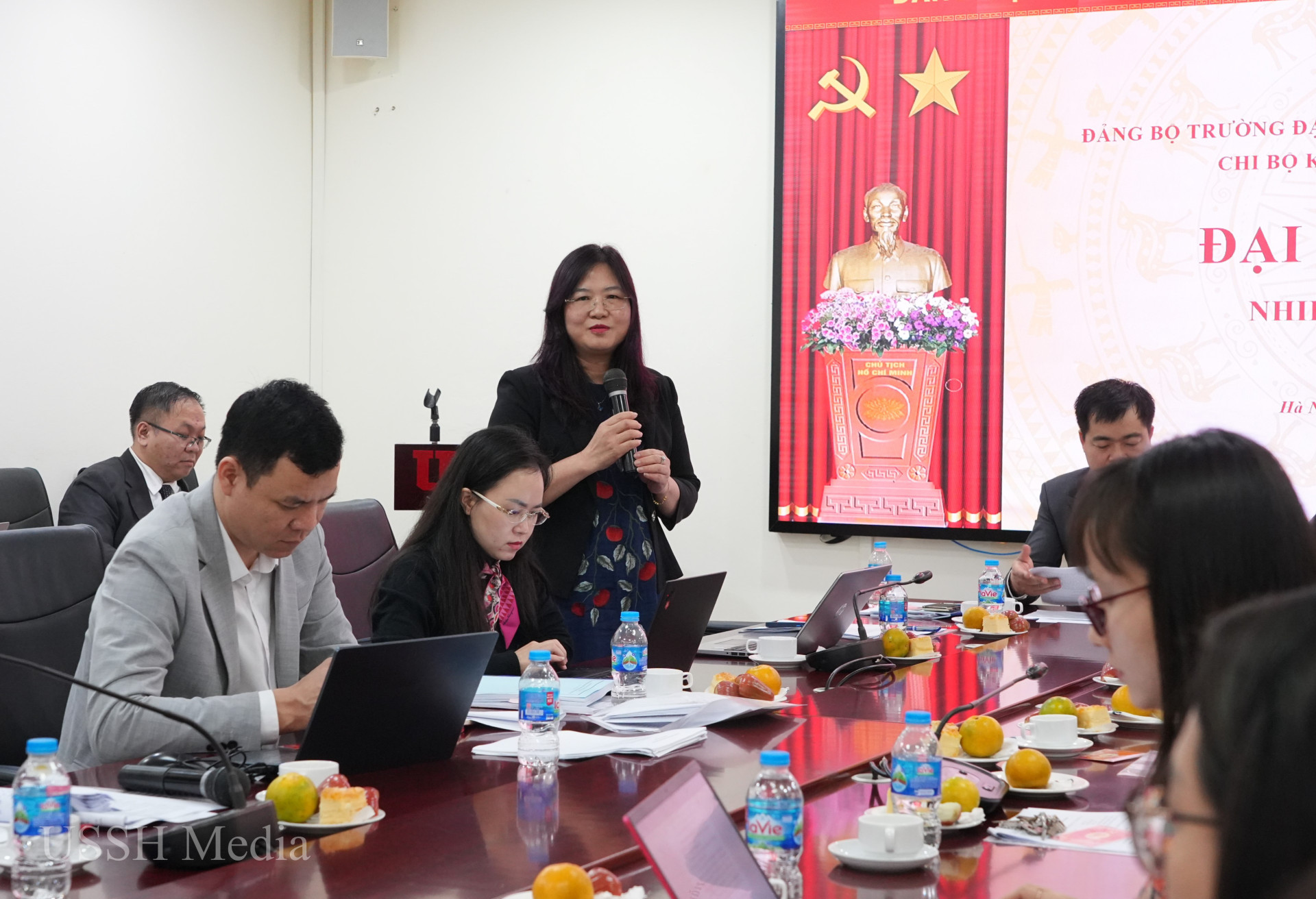 Đồng chí đồng chí Ngô Thị Kiều Oanh - Ủy viên Ban Thường vụ Đảng ủy Trường Đại học Khoa học Xã hội và Nhân văn đánh giá cao tinh thần chủ động, kịp thời, tâm huyết, trách nhiệm của Chi ủy trong nhiệm kỳ qua